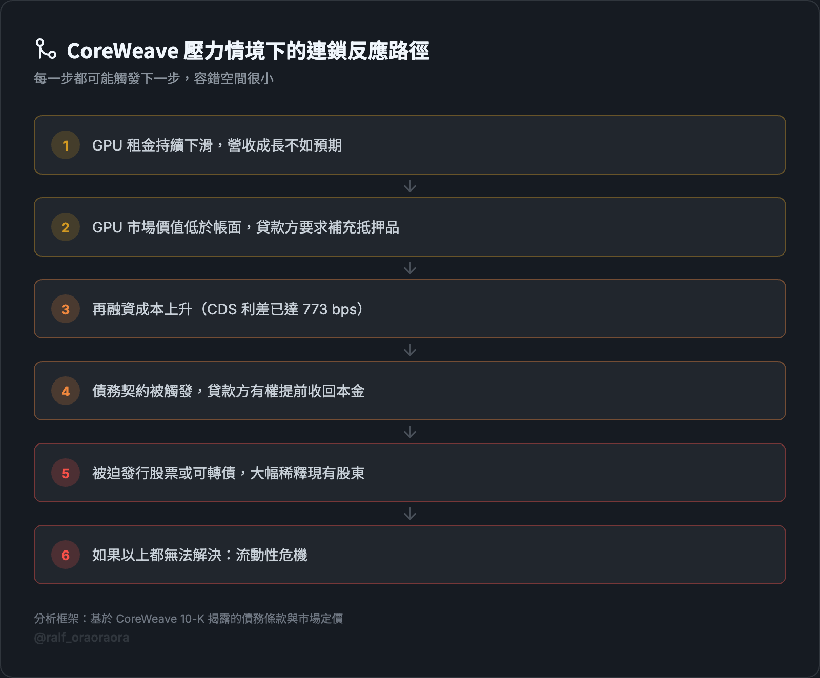 不會像 CoreWeave 那樣面臨違約,但股權稀釋的壓力會加速。