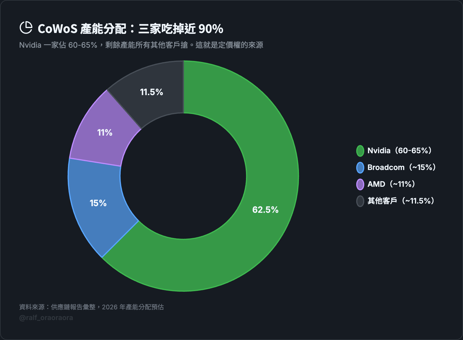 Nvidia 一家就佔了這個產能的 60% 到 65%。